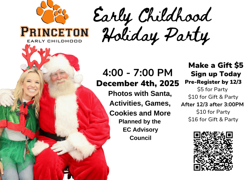 ✨ Don’t miss our Early Childhood Holiday Party! Join us for a night of family fun, crafts, games, and holiday cheer on Thursday, December 4th from 4:00–7:00 PM at the Early Childhood Center. It’s the perfect way to celebrate the season with your little ones!