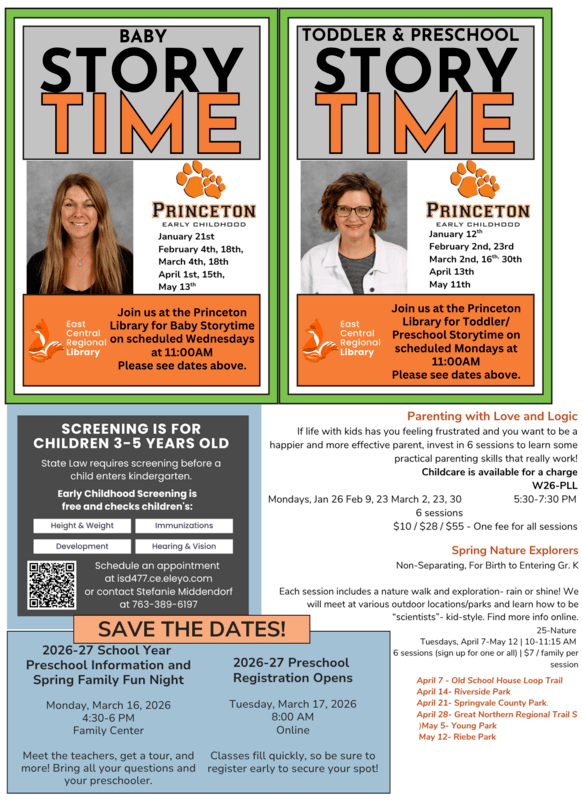 Princeton Community Education offers a year-round Preschool and School Age Child Care Program, designed to meet the needs of families in our district.